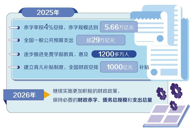 中央經(jīng)濟(jì)工作會(huì)議部署,2026年我國繼續(xù)實(shí)施更加積極的財(cái)政政策。擴(kuò)大財(cái)政支出盤子、優(yōu)化政府債券工具組合、增強(qiáng)地方自主可用財(cái)力、持續(xù)優(yōu)化支出結(jié)構(gòu)、加強(qiáng)財(cái)政金融協(xié)同……記者從日前召開的全國財(cái)政工作會(huì)議獲悉,2026年更加積極的財(cái)政政策將繼續(xù)打出有力有效的“組合拳”,強(qiáng)化對經(jīng)濟(jì)發(fā)展的支撐和保障。