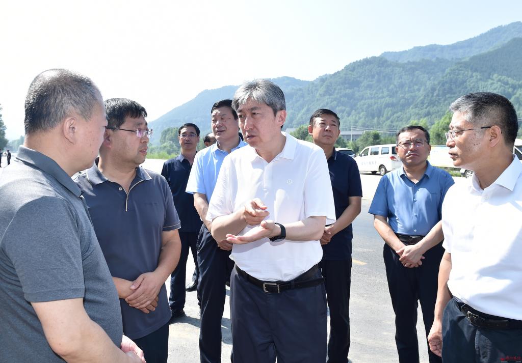 朱曉東先后來到滄榆高速忻阜段阜平方向K285+500處、金崗庫鄉(xiāng)蛤蟆石村、石咀鎮(zhèn)污水廠橋等地,認真聽取有關(guān)工作匯報,實地察看塌陷路段搶修進展情況,詳細了解道路通行、交通安全隱患風險點排查、防汛排澇準備、河道行洪安全、地質(zhì)災(zāi)害防范等情況,并提出工作要求。