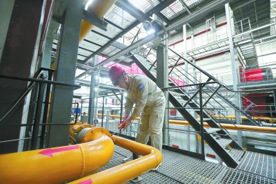 昨天上午,在北京熱力集團豐臺分公司馬家堡供熱服務(wù)中心西馬服務(wù)站鍋爐車間內(nèi),鍋爐廠家正在對5臺供熱鍋爐進行正式供熱前的系統(tǒng)確認。本報記者 甘南攝