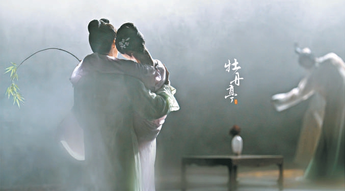 劇中的花神由演員李倩飾演,她既是杜柳愛情跨越時(shí)空的見證者,又是與杜麗娘有靈魂共鳴的女性知己。李倩說,這個(gè)角色“既有神性的超脫,又有人性的溫情,還有屬于自然的本真”。她與杜麗娘之間沒有傳統(tǒng)的雙人舞,依靠的是眼神、呼吸與肢體的微妙呼應(yīng)。在“寫真”的共舞中,兩人動作呼吸完全同步,達(dá)到了至高的融合。