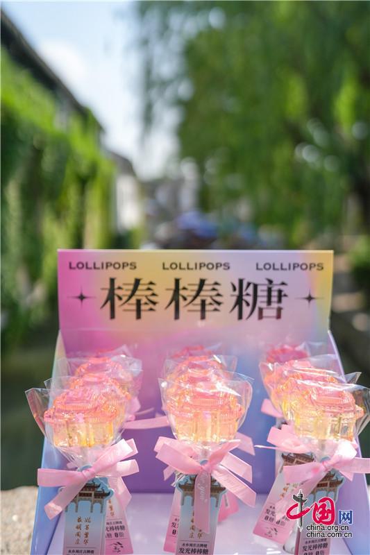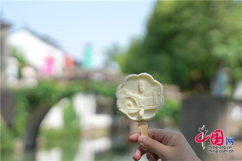 尋找,一口甜 周董那首《夏天的味道》,不必多說,甜甜的。第一次遇見一位姑娘,也是如此甜甜的,手上有棒棒糖和冰激凌?!盎鹦恰笨?、“雙橋”版,新歡舊愛都喜歡。 冰激凌融化的第一口,“古牌樓”棒棒糖戴著蝴蝶結(jié)突發(fā)奇想,發(fā)著光:“姑蘇繁華,最明周莊”。