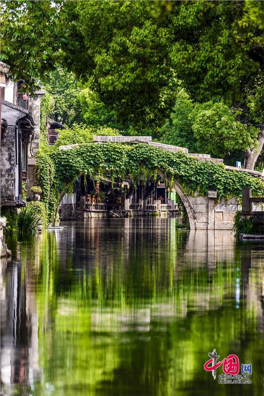 尋找,一墻綠 五月的花不趕場,初夏的風(fēng)微微涼。一陣吹來一墻綠,小鎮(zhèn)是初戀的味道,綠色鋪滿了雙橋。 時光推動著季節(jié),爬山虎長滿歲月的棱角,步步有序。 微風(fēng)里,葉子發(fā)出慵懶的聲音,泛起水巷陣陣漣漪。靜泊的小船、倒映的黛瓦古橋、長長的穿竹石欄,相映成趣。