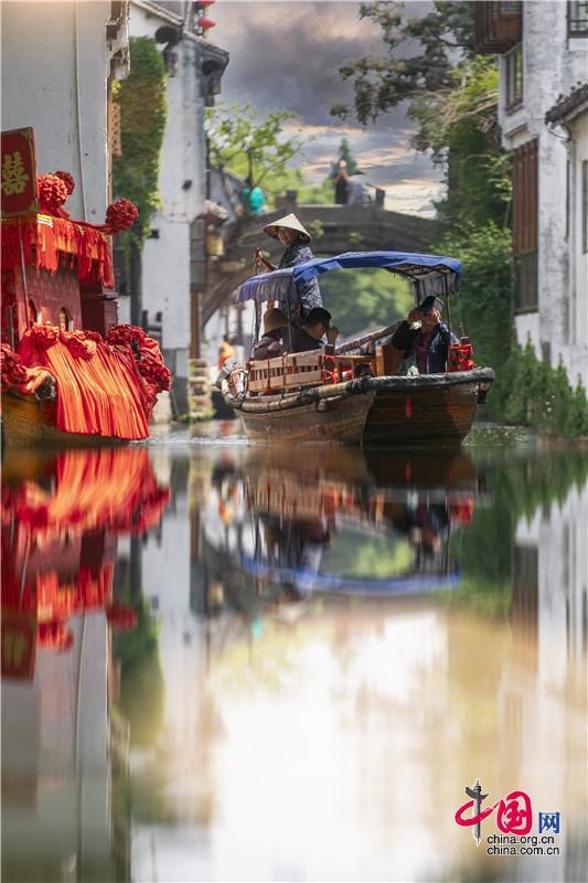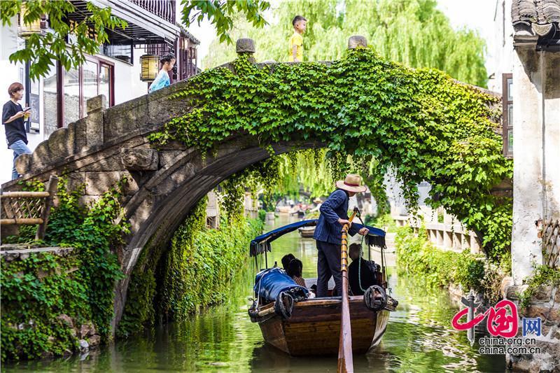 “溫度在緩緩上升,屬于水鄉(xiāng)的浪漫正在路上。” 五月的陽光蒸發(fā)著淡淡的水氣,把天空洗得剔透,蔚藍(lán)至極;清晨巷子里吳儂軟語浸在水波中,微風(fēng)草木香,把初夏注的盈滿。 在周莊,初夏需要尋找嗎?需要,需要你眼眸中最溫柔的0.03秒。