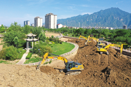 涑水河永濟段河道治理工程采取河道清淤拓寬、生態(tài)護岸等措施,將防洪與生態(tài)景觀自然融合。