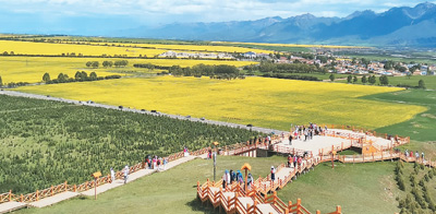 7月,青海省門源回族自治縣油菜花綻放,一蓬蓬、一簇簇迎風舞動,宛如金色的海洋。付 利攝