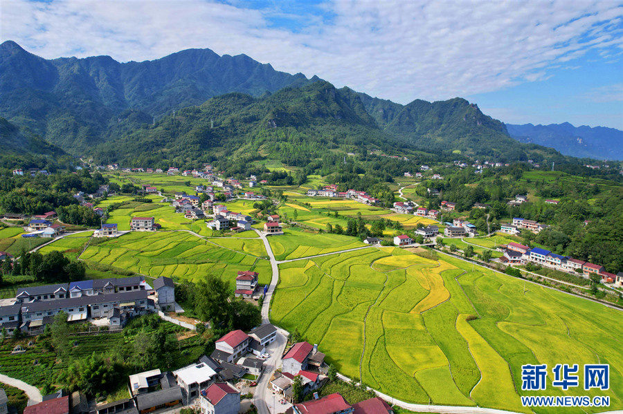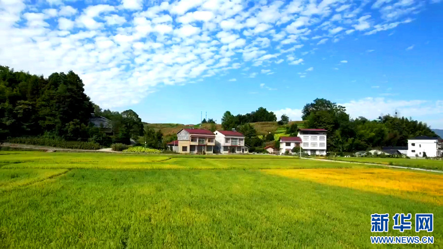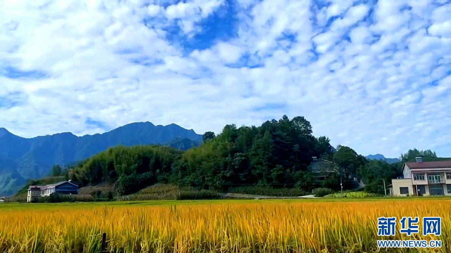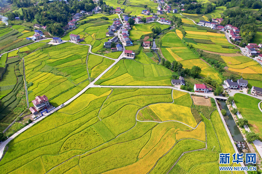 ??鶴峰縣走馬鎮(zhèn)千金村的葛稻共生基地稻谷飄香。新華網(wǎng)發(fā) 申玉潔 攝