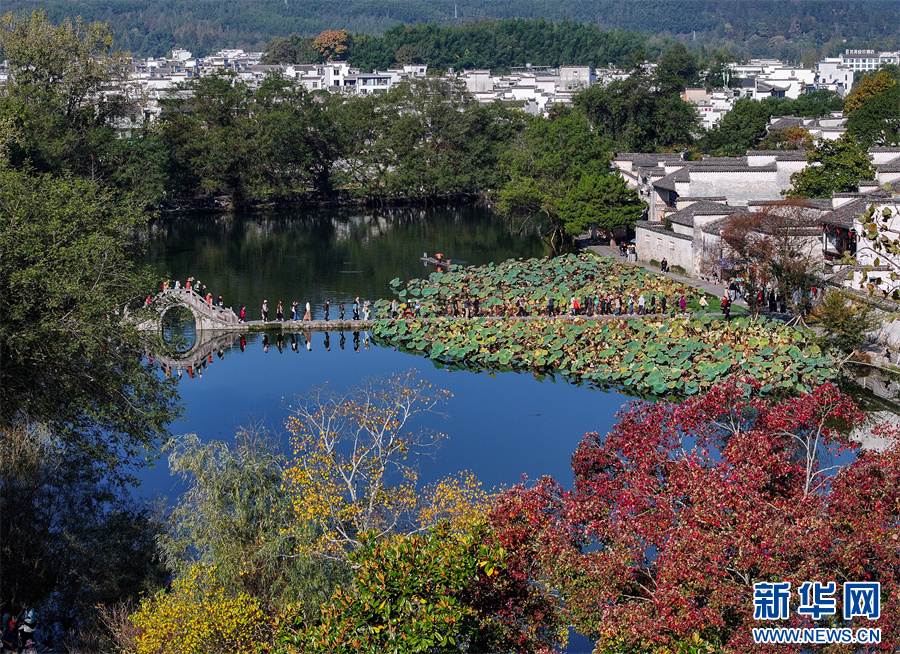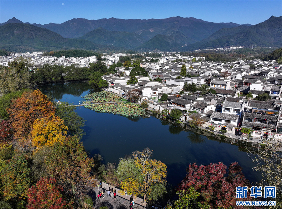 11月1日,在安徽省黃山市黟縣宏村拍攝的秋日風(fēng)景。(無(wú)人機(jī)照片)