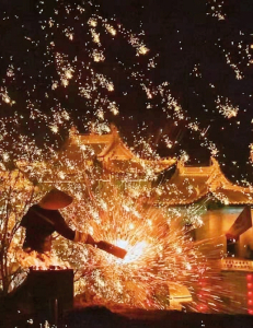 活動(dòng):來自湖南瀏陽的專業(yè)煙花團(tuán)隊(duì)根據(jù)榆次老城環(huán)境特色,打造一場炫酷煙火電音的煙花秀,用零煙花瀑布技術(shù),在安全的前提下為游客帶來視覺與美的極致體驗(yàn),將極光天幕+雪景泡泡禮花相結(jié)合,以年輕人的視角與這座百年的歷史古城完美契合,迸發(fā)出新時(shí)代的活力和浪漫。今年榆次老城首次引入大型威亞表演,在電音舞臺(tái)上方演員“飛”奔而來,絢爛的舞臺(tái)燈光承接美輪美奐的威亞敦煌飛天,在45分鐘的飛天表演中,一場傳統(tǒng)美學(xué)和現(xiàn)代流行的結(jié)合悄然展開,重回千年前的敦煌。同時(shí),老城內(nèi)整體以紅色為主色調(diào),琳瑯滿目的春聯(lián)、門神、年畫、福字、橫批、窗花等紅色喜慶元素、布置各種具有著吉祥寓意的大型燈組供游客打卡拍照。