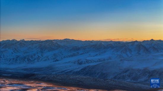 這是夕陽(yáng)下慕士塔格峰周邊的昆侖山脈(1月12日攝,無人機(jī)照片)。