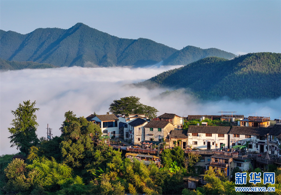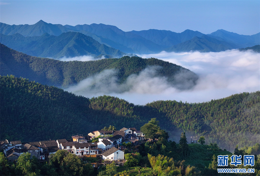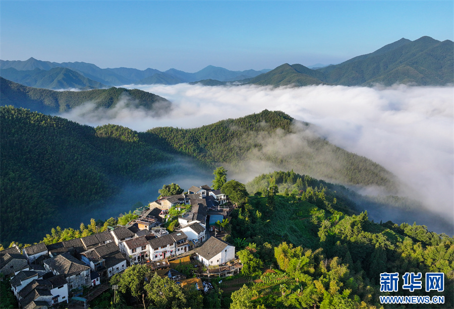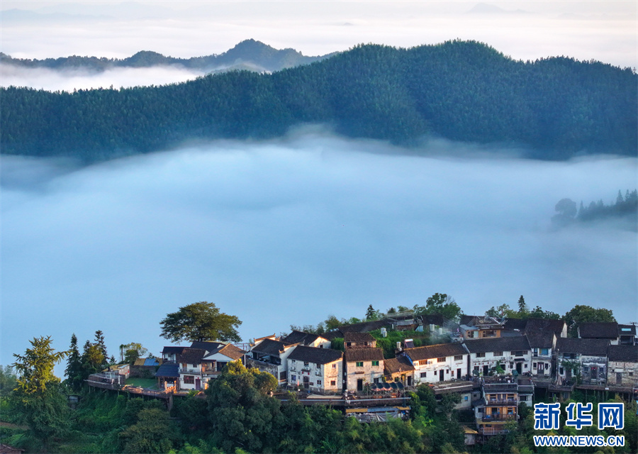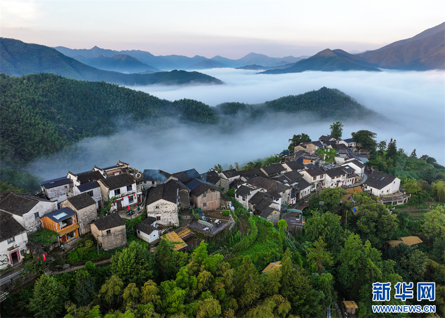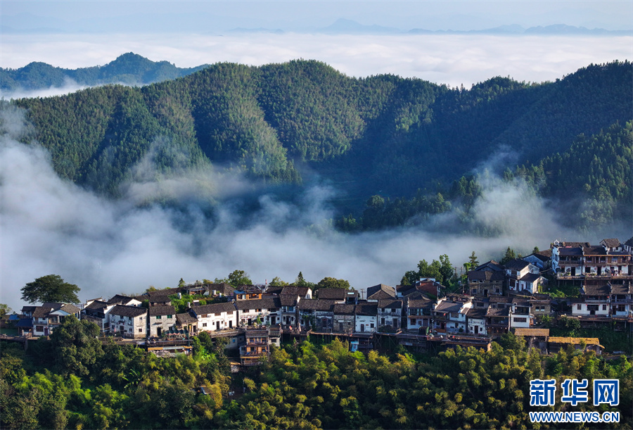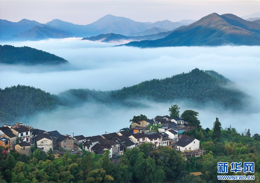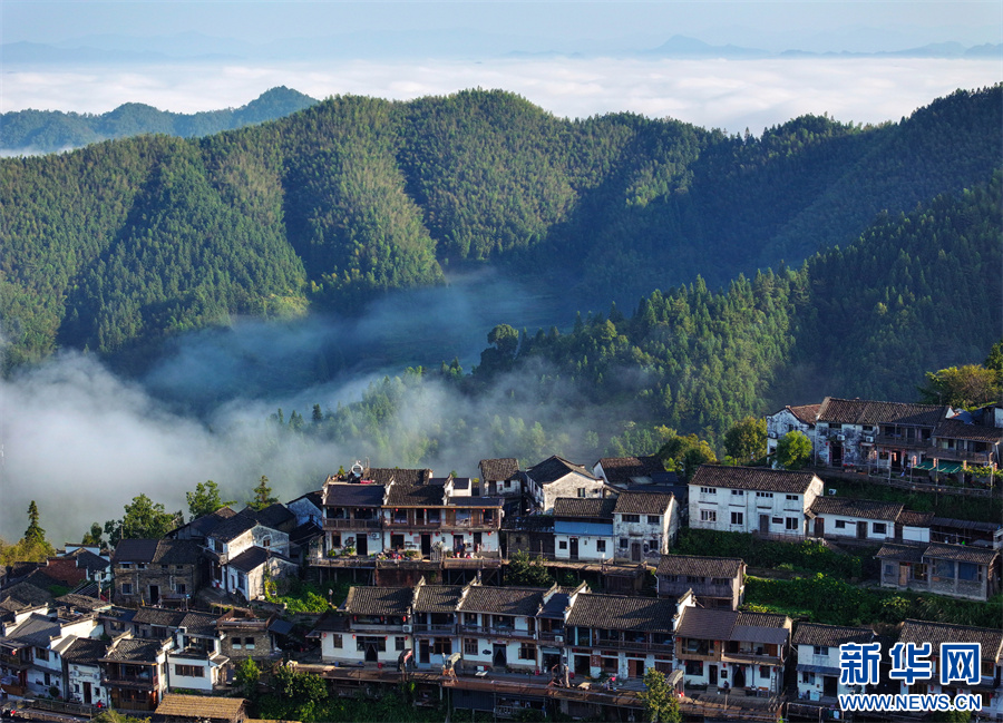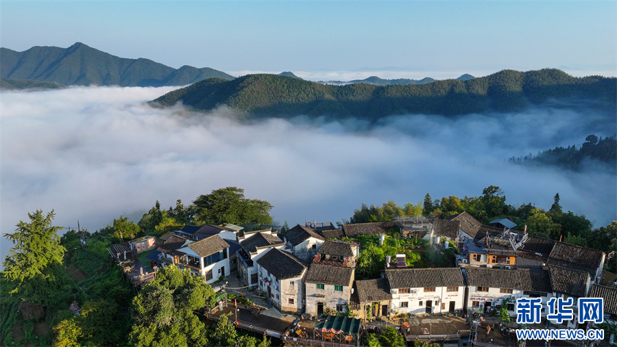 當(dāng)日,雨后初霽的安徽省黃山市休寧縣溪口鎮(zhèn)木梨硔村出現(xiàn)磅礴壯美的云海景觀。連綿的群山與漂浮的云海環(huán)抱著依山而建的徽派古村落,勾勒出一幅絕妙的秋日水墨畫卷。新華網(wǎng)發(fā)(施亞磊 攝)