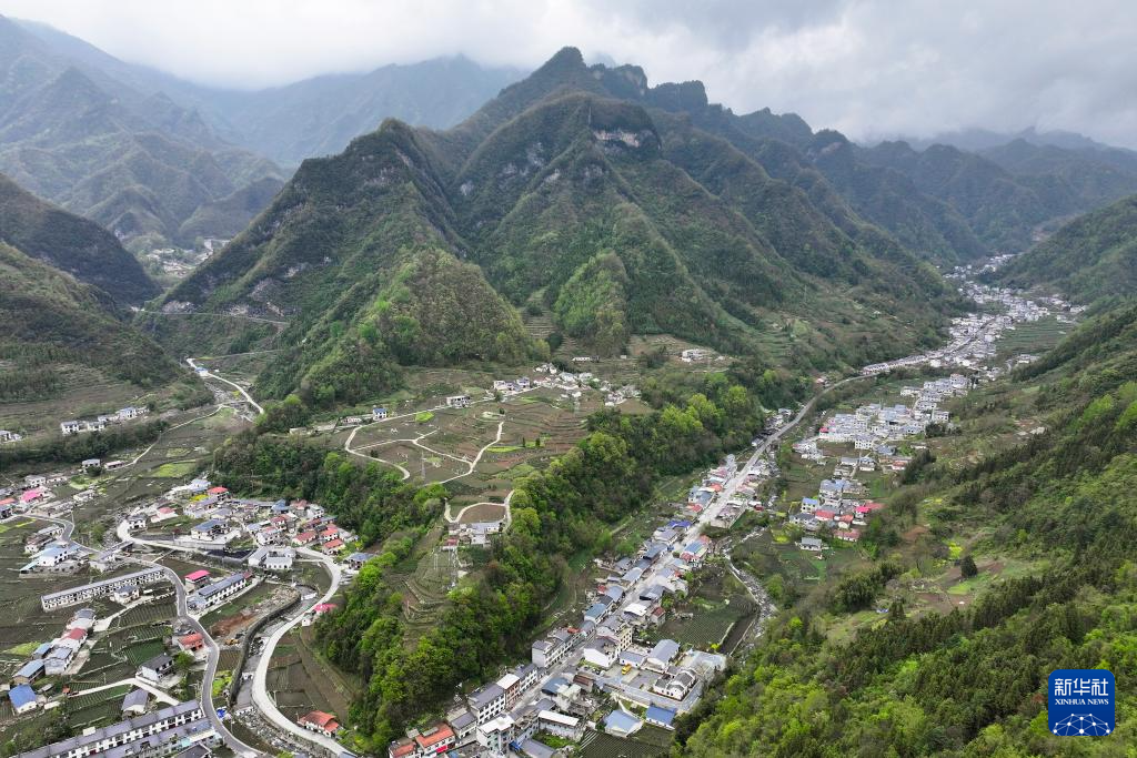 陜西省安康市平利縣八仙鎮(zhèn)龍門村景色(4月14日攝,無人機照片)。