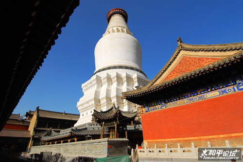 塔院寺位于五臺山臺懷鎮(zhèn)顯通寺南側(cè),是五臺山著名的五大禪處之一。這里原來是顯通寺的塔院,明代重修舍利塔后獨成一寺,因院內(nèi)有大白塔,故名塔院寺。 聳入云天的大白塔,是寺內(nèi)的主要標(biāo)志。
