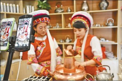 圖為主播在推介銅火鍋。李茂穎 董孟良攝影報道