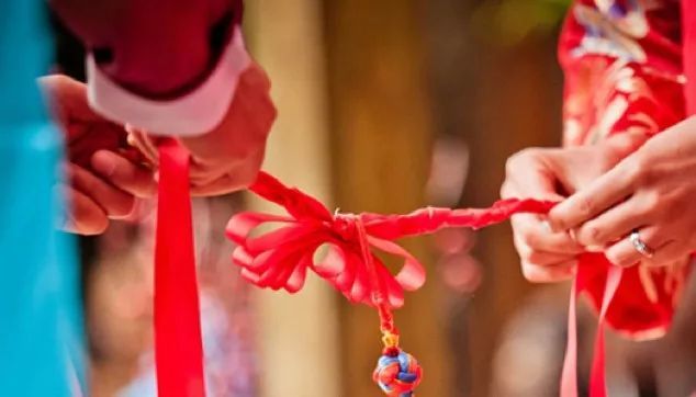 后來(lái),人們就稱首次結(jié)婚的男女為“結(jié)發(fā)夫妻”。在有些新婚洞房中可看到火紅色的“同心結(jié)”,即是古代同心發(fā)結(jié)的延伸,“結(jié)”字取其堅(jiān)固、結(jié)伴、結(jié)合之意。