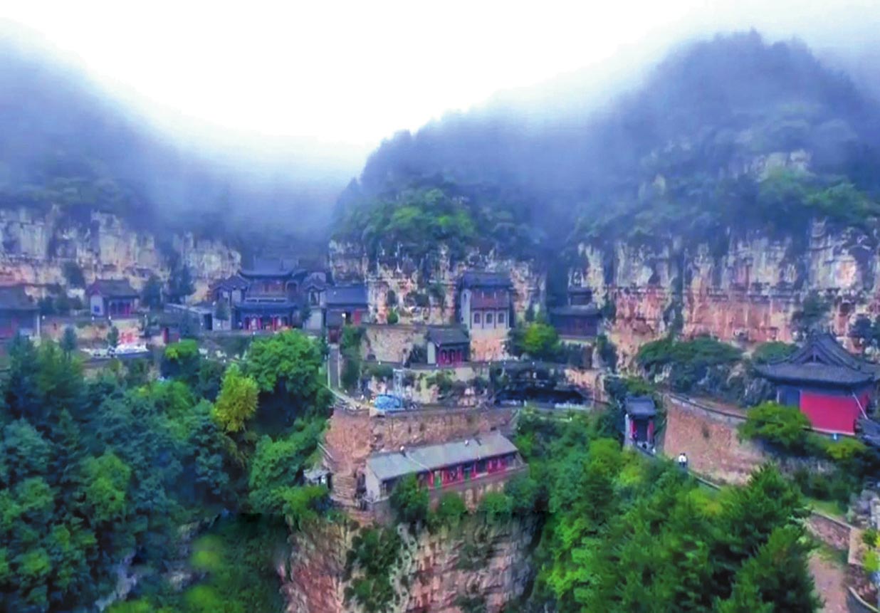 《代州志》記載,趙杲觀創(chuàng)建于北魏時期,歷代均有修葺擴建。其北洞是主體建筑部分,現(xiàn)存建筑物為明代重修,可分北洞與南洞兩大群落。北洞以道教為主,南洞以佛教為主。其中最有特色的兩處要算是北洞的“五層樓”和“三間閣”了。趙杲觀東側(cè)迎面山壁上,自然形成了龐大的三角形石縫,內(nèi)有天然石洞,景觀奇特。石縫上端,外建五層樓閣。依崖開鑿石洞,梁架結(jié)構(gòu)與崖石交接構(gòu)筑,建造精巧。三間閣內(nèi)設(shè)有鐵索,扶鐵索可攀援而上。箭閣外塑趙杲泥像,頭頂距石崖僅二指半,故舊稱“趙杲觀,離天二指半”。再往南,就是趙杲觀最險峻的景觀了。
