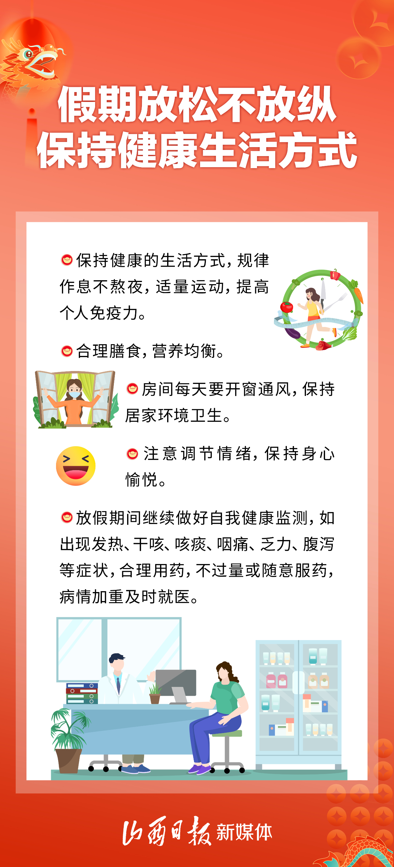 當(dāng)前正值呼吸道、腸道傳染病多發(fā)季節(jié),伴隨春節(jié)假期的來臨,人員流動(dòng)和聚集性活動(dòng)明顯增多,做好個(gè)人防護(hù)很重要。為此送上健康小貼士,開開心心迎新年。