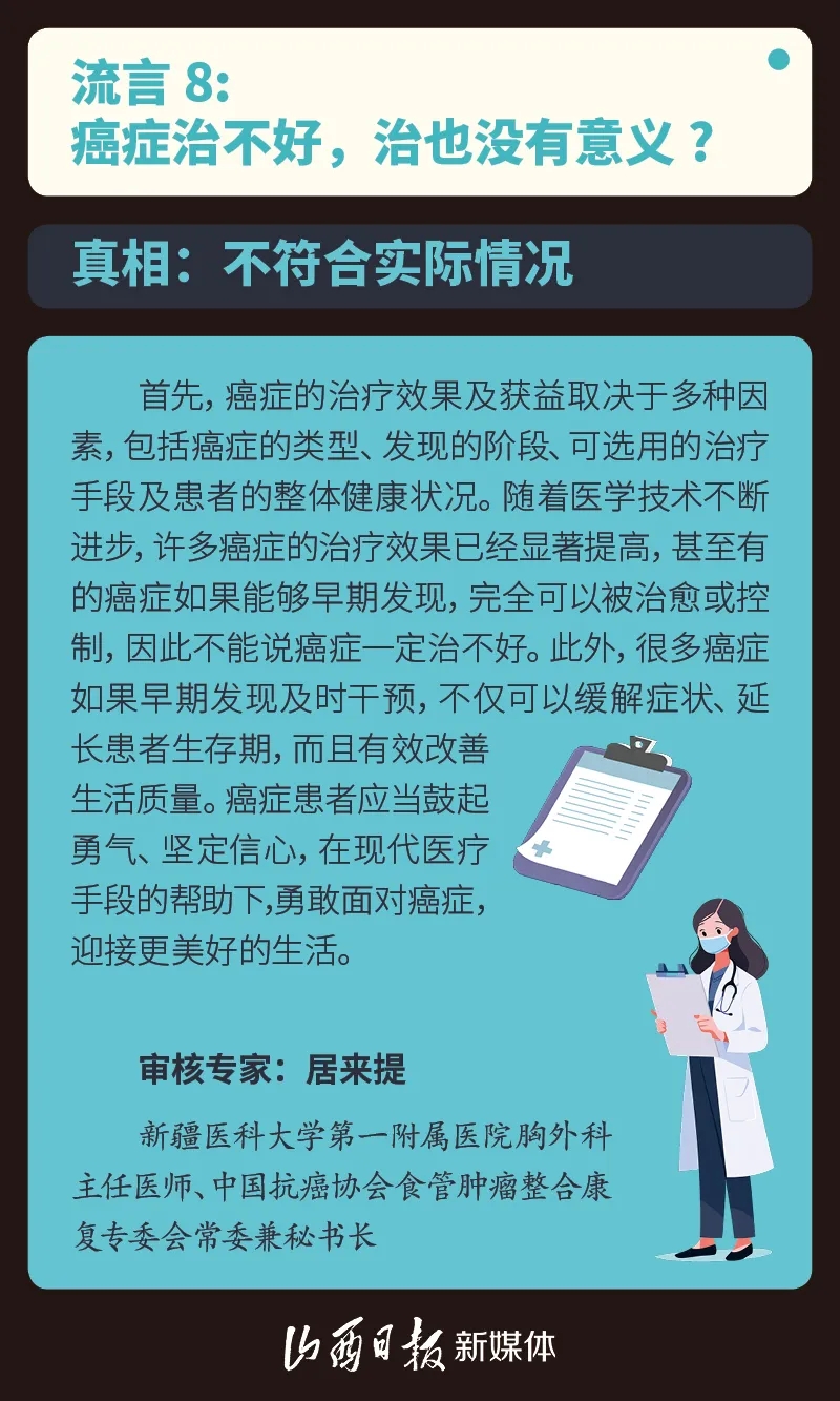 2024年4月15至21日是第30個(gè)全國(guó)腫瘤防治宣傳周??茖W(xué)辟謠聯(lián)合中國(guó)互聯(lián)網(wǎng)聯(lián)合辟謠平臺(tái)、“學(xué)習(xí)強(qiáng)國(guó)”學(xué)習(xí)平臺(tái)、中國(guó)抗癌協(xié)會(huì),針對(duì)10個(gè)廣為流傳的有關(guān)“防治癌癥”的流言進(jìn)行解讀,快看看你中招了沒?