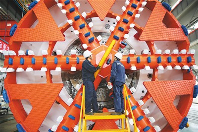 今年以來(lái),濟(jì)南重工集團(tuán)有限公司打造以軌道交通裝備產(chǎn)業(yè)為核心的智能制造與高端裝備產(chǎn)業(yè)園,重點(diǎn)發(fā)展全斷面隧道掘進(jìn)機(jī)、隧道掘進(jìn)專用裝備、裝配式建材生產(chǎn)線等產(chǎn)品領(lǐng)域,老國(guó)企煥發(fā)出勃勃生機(jī)。圖為工人在查看即將完工的盾構(gòu)機(jī)刀盤。