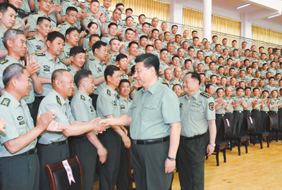 5月21日,中共中央總書記、國(guó)家主席、中央軍委主席習(xí)近平到陸軍步兵學(xué)院視察。這是習(xí)近平親切接見駐江西部隊(duì)副師職以上領(lǐng)導(dǎo)干部和建制團(tuán)級(jí)單位主官、陸軍步兵學(xué)院本部正團(tuán)職以上干部和石家莊校區(qū)主官、專家教授代表。新華社記者 李 剛攝