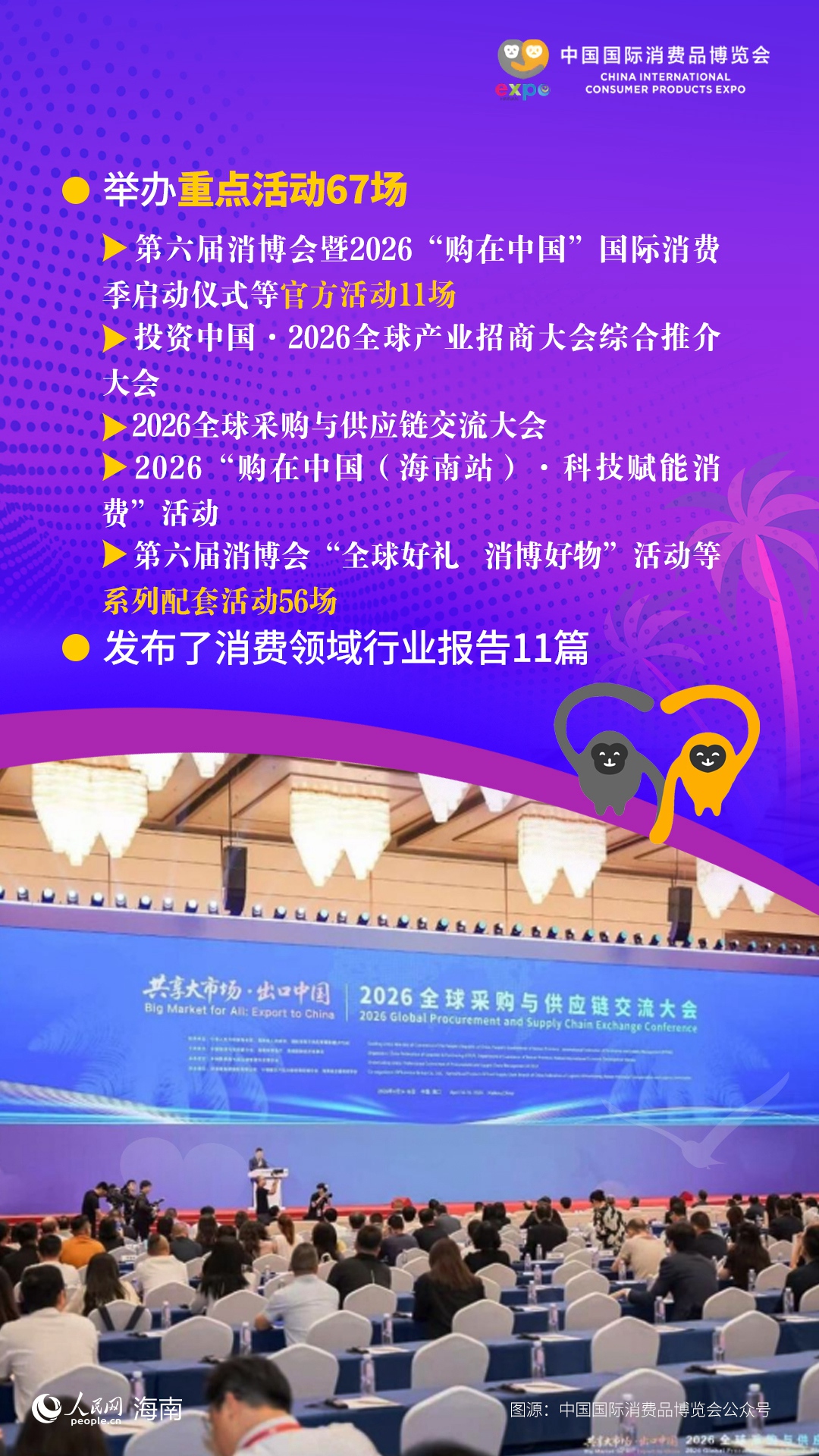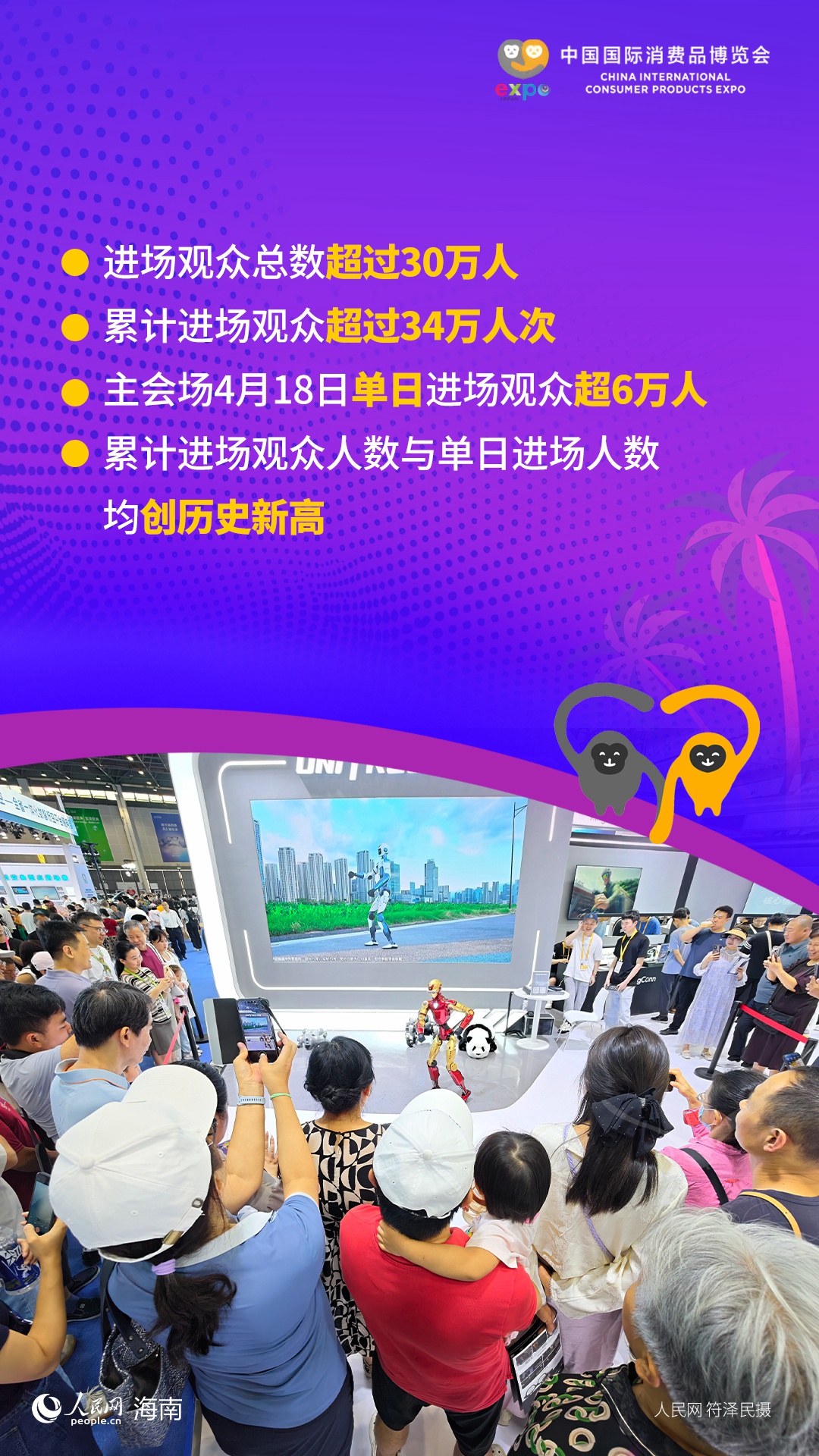 一扇窗口聯(lián)通內(nèi)外 一場盛會擁抱世界。4月13日至18日,以“開放引領(lǐng)全球消費,創(chuàng)新驅(qū)動美好生活”為主題的第六屆中國國際消費品博覽會在海南舉行。本屆消博會是2025年12月海南自貿(mào)港啟動全島封關(guān)運作以來的“首展”,也是今年中國重大外貿(mào)展會的“首展”。一組數(shù)據(jù)看本屆消博會亮眼成績!