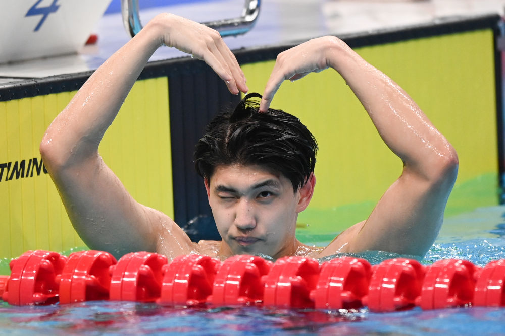 5月3日,汪順在比賽后。新華社記者黃宗治攝