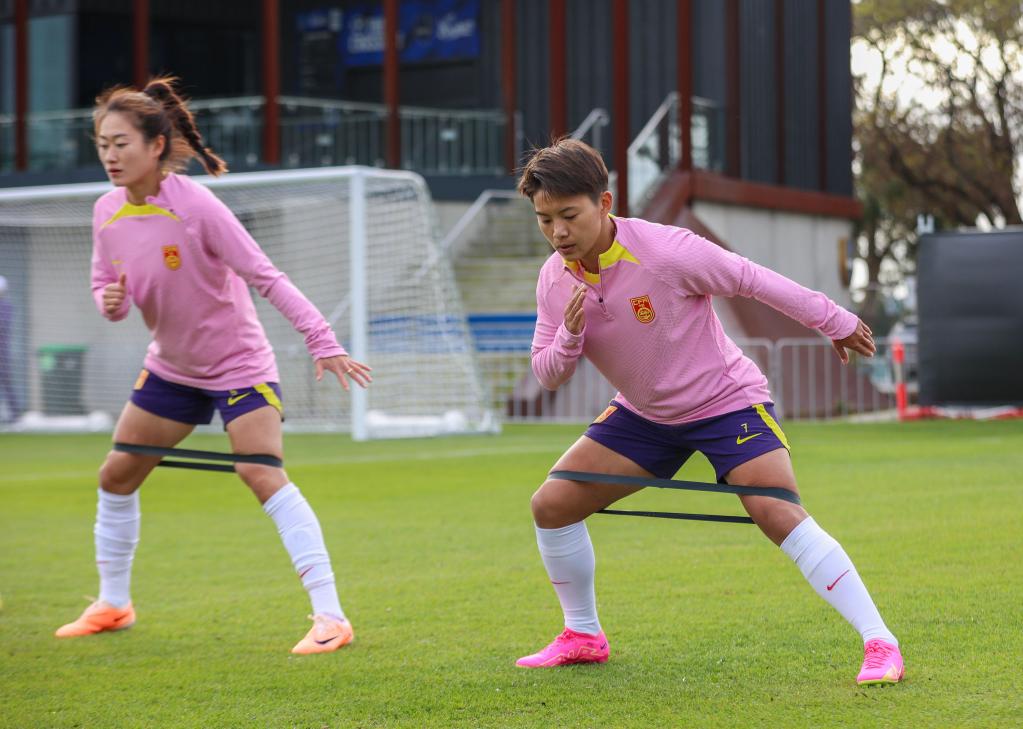 7月10日,中國(guó)隊(duì)球員王霜(左二)在訓(xùn)練中。新華社發(fā)(謝思達(dá)攝)