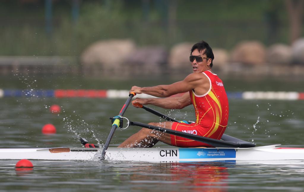 9月25日,張亮在男子單人雙槳決賽中。新華社記者 杜瀟逸 攝