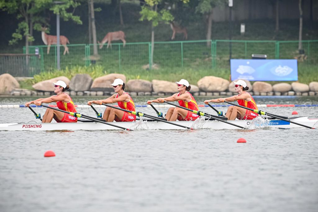 在女子四人雙槳決賽中,陳云霞、張靈、呂揚、崔曉桐組成的奧運冠軍組合,以6分42秒84的成績奪冠,伊朗隊和越南隊分獲二、三名。