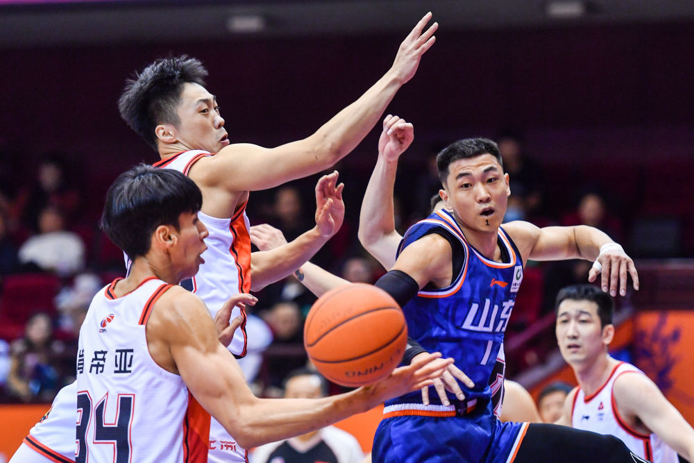 山東隊(duì)與江蘇隊(duì)都需要一場(chǎng)勝利來走出連敗陰影。比賽伊始,兩隊(duì)失誤連連、效率不高,山東隊(duì)稍稍領(lǐng)先。次節(jié)比賽,山東隊(duì)主動(dòng)提升防守強(qiáng)度、進(jìn)行全場(chǎng)緊逼,江蘇隊(duì)對(duì)此缺乏應(yīng)對(duì)、顯得很不適應(yīng)??完?duì)屢將比分追至一球之差,卻難以抹平分差。半場(chǎng)哨響,山東隊(duì)55:51領(lǐng)先江蘇隊(duì)。