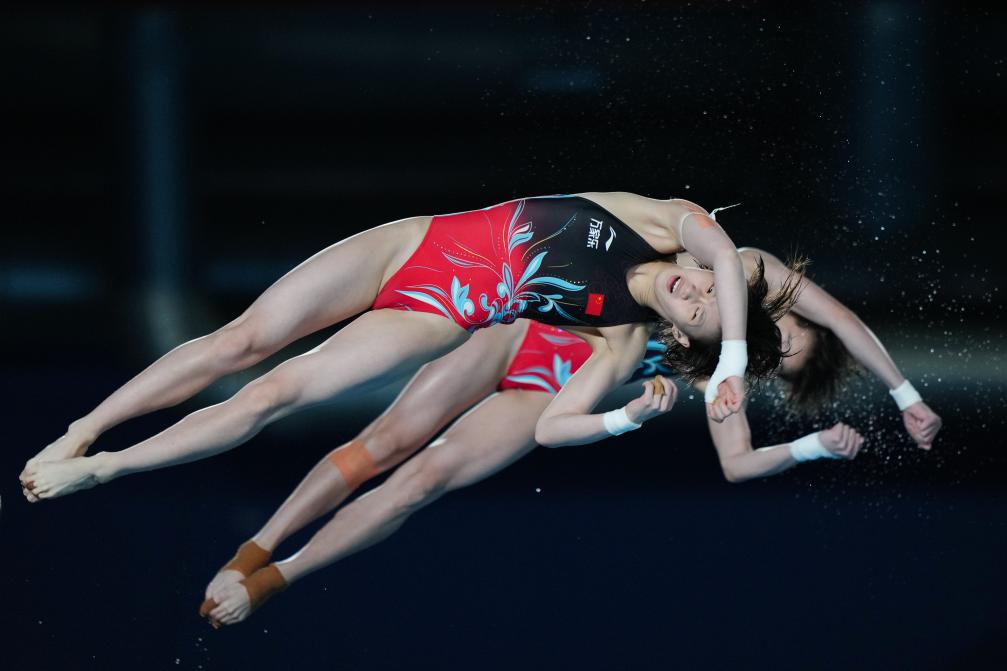 決賽中,與2022布達(dá)佩斯和2023福岡兩屆世錦賽情況相似,中國“王牌組合”占據(jù)絕對(duì)優(yōu)勢(shì)。陳芋汐/全紅嬋5次試跳,每一輪都得到最高分,一路領(lǐng)跑,最終以362.22分折桂,實(shí)現(xiàn)世錦賽“三連冠”。