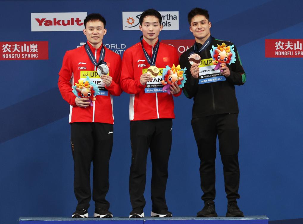 男單3米板較量中,傷愈復出的奧運冠軍謝思埸在預賽和半決賽處于領跑態(tài)勢,衛(wèi)冕冠軍王宗源在決賽發(fā)揮更加出色,6跳中有5跳拿到最高分,最終以538.70分摘金,實現(xiàn)世錦賽該項目“三連冠”。這也是王宗源職業(yè)生涯第8枚世錦賽金牌。謝思埸以516.10分摘得銀牌,墨西哥選手奧爾韋拉-伊瓦拉獲得銅牌。