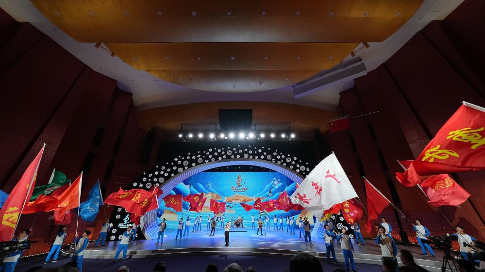 冰雪相約,同心筑夢。27日20時許,“十四冬”閉幕式在呼倫貝爾大劇院開始。在歡快熱烈的氣氛中,各參賽代表團(tuán)旗幟入場。全體起立,奏唱中華人民共和國國歌。