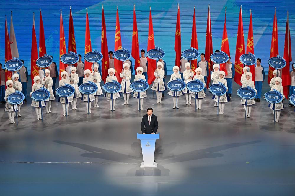 2月27日,第十四屆全國冬季運動會組委會主任、國家體育總局局長高志丹致閉幕辭。新華社記者 胥冰潔 攝