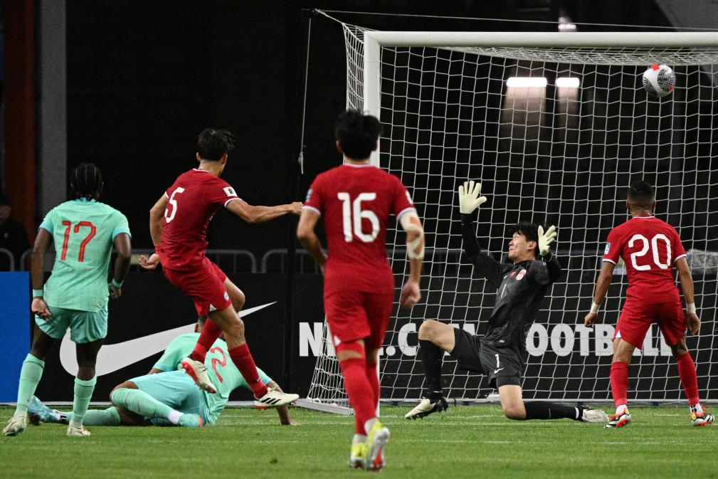 下半場(chǎng)風(fēng)云突變,新加坡隊(duì)率先換人收到奇效,替補(bǔ)登場(chǎng)的拉姆利在第53分鐘禁區(qū)外遠(yuǎn)射為主隊(duì)扳回一城。國足此后也進(jìn)行了換人調(diào)整,以圖穩(wěn)固領(lǐng)先優(yōu)勢(shì),不料卻后防“失火”。第81分鐘,中國隊(duì)后衛(wèi)張琳芃禁區(qū)內(nèi)解圍踢空,新加坡隊(duì)另一名替補(bǔ)隊(duì)員馬勒抓住機(jī)會(huì)爆射破門,將比分扳平。