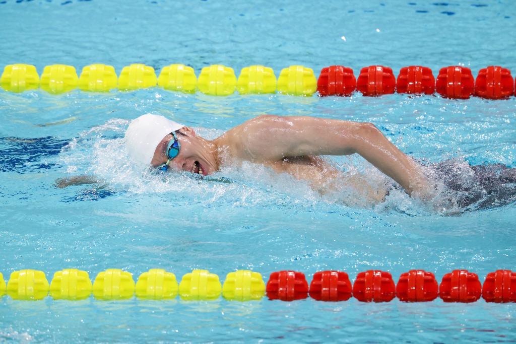 12月13日,浙江隊(duì)選手謝志立在男子400米自由泳S9級決賽中。最終,他獲得冠軍。新華社記者 梁旭 攝