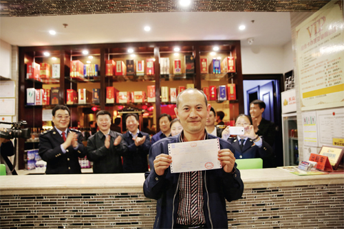 原平市王府甲魚(yú)城負(fù)責(zé)人展示開(kāi)出的“1 號(hào)票”