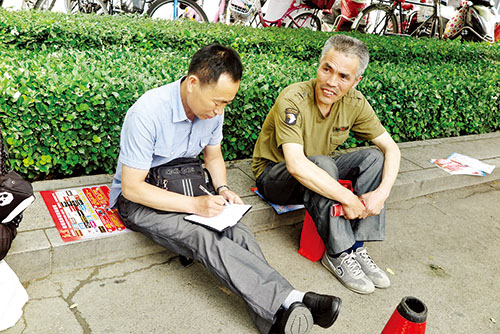 本報(bào)記者正在采訪家長(zhǎng)(張志遠(yuǎn) 攝)