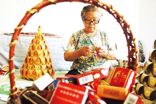 同煤集團軒崗煤電公司退休女職工王治勤喜歡用撿來的廢香煙盒制作工藝品,送給礦工,倡導(dǎo)“吸煙有害健康,戒煙從我做起”的觀念。今年已經(jīng)75歲高齡的王治勤,在職時下過井,開過井下運煤電車,做過礦工的思想政治工作,也在圖書館工作,為礦工讀書提供方便,她深知礦工的工作和生活。退休后王治勤仍然閑不下來,為礦工健康著想,動手整理拾到的廢煙盒,做成工藝品。目前她已精心制作送給礦工1000余個工藝品,300余名礦工戒掉了吸煙的嗜好。圖為王治勤正在精心制作煙盒工藝品(吉建平 攝)