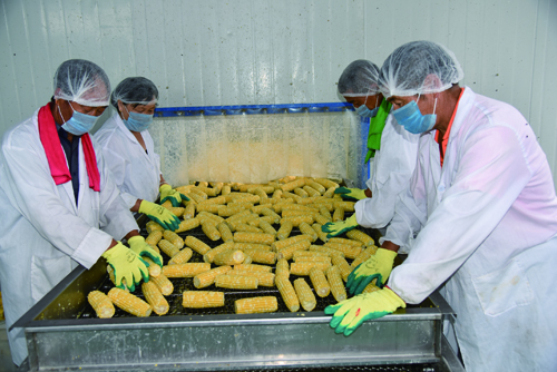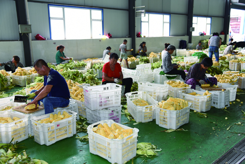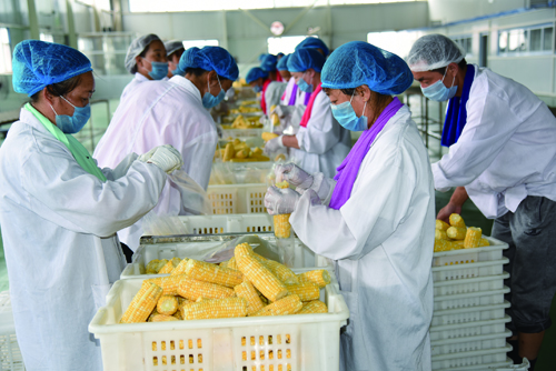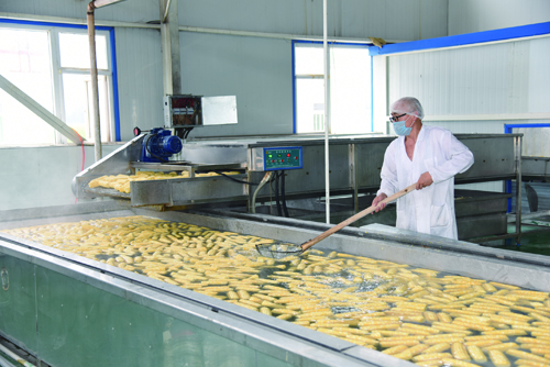 加工生產(chǎn)水果玉米的熱烈場面