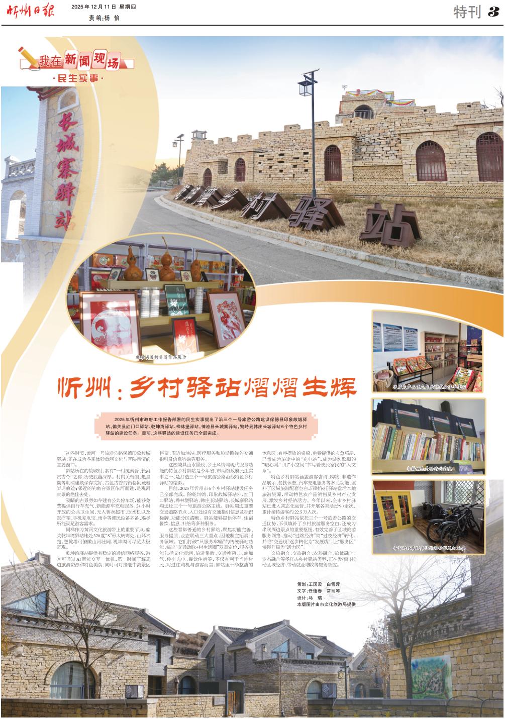 2025年忻州市政府工作報告部署的民生實事提出了沿三個一號旅游公路建設保德縣印象故城驛站,偏關縣紅門口驛站、乾坤灣驛站、樺林堡驛站,神池縣長城寨驛站,繁峙縣韓莊長城驛站6個特色鄉(xiāng)村驛站的建設任務。目前,這些驛站的建設任務已全部完成。