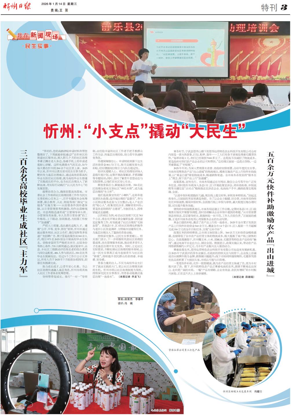 “李奶奶,您的高齡津貼申請材料我?guī)湍砗昧耍轮芫湍軐徟ㄟ^!”在忻府區(qū)的街道社區(qū)服務(wù)站,剛?cè)肼殠讉€月的社區(qū)助理李菁正蹲在老人身邊,指著手機(jī)上的申請進(jìn)度耐心講解。這樣充滿煙火氣的互動,如今每天都在忻州的200余個社區(qū)里上演。2025年以來,忻州市以落實省市民生實事為抓手,靶向發(fā)力基層治理痛點(diǎn),通過高效招募高校畢業(yè)生擔(dān)任社區(qū)助理,既為高校畢業(yè)生搭建了實踐成長的平臺,也為社區(qū)治理注入了新鮮血液,用實際行動踐行“以人民為中心”的發(fā)展思想。