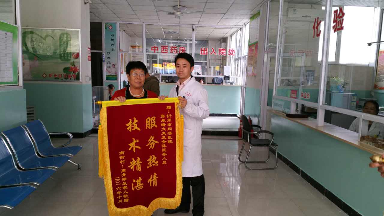 “謝謝您!張大夫,我現(xiàn)在精神好多了,睡眠也好了,吃飯也有胃口了……真是不知道怎樣感謝您才好。”10月8日,位于忻州市光明西街的同濟醫(yī)院辦公室,高老先生夫婦握著張大夫的手激動地說。其妻子郝女士將早已準備好的一面“服務熱情,醫(yī)術精湛”的錦旗送到張成喜大夫手中。同樣來自代縣胡峪鄉(xiāng)的賈先生也將一面寫有“醫(yī)德高尚,醫(yī)術精湛”的錦旗送到了該院寧院長手中。