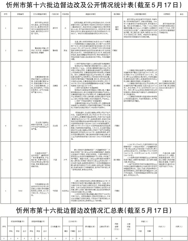 我市高度重視,立即組織查處,截至5月17日,督辦的6件群眾反映問題已辦結(jié)。其中,確認(rèn)屬實(shí)1件;確認(rèn)部分屬實(shí)2件;確認(rèn)不屬實(shí)3件。對(duì)于屬實(shí)和部分屬實(shí)已辦結(jié)的環(huán)保問題,分別采取了相應(yīng)處理措施,共罰款14萬元,對(duì)3名相關(guān)責(zé)任人進(jìn)行約談,對(duì)1名相關(guān)責(zé)任人進(jìn)行誡勉談話。對(duì)6件群眾反映問題調(diào)查處理情況進(jìn)行了信息公開。