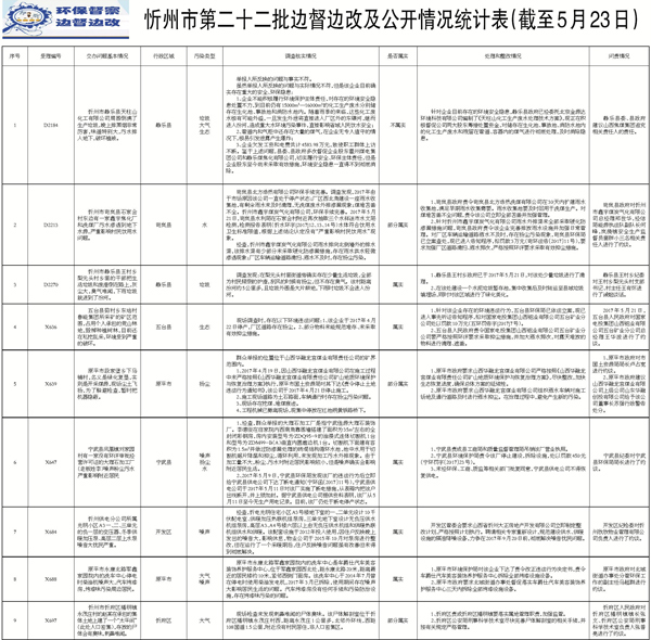 我市高度重視,立即組織查處,截至5月23日,督辦的15件群眾反映問題已辦結(jié)。其中,確認(rèn)屬實5件;部分屬實7件;不屬實3件。對于屬實和部分屬實已辦結(jié)的環(huán)保問題,分別采取了相應(yīng)處理措施,其中罰款18.045萬元,對20名相關(guān)責(zé)任人進(jìn)行了約談,對1名相關(guān)責(zé)任人進(jìn)行了黨紀(jì)政紀(jì)處分。對15件群眾反應(yīng)問題調(diào)查處理情況進(jìn)行了信息公開。