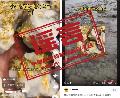 辟 謠“金馬河現(xiàn)800克狗頭金”視頻系拼接剪輯