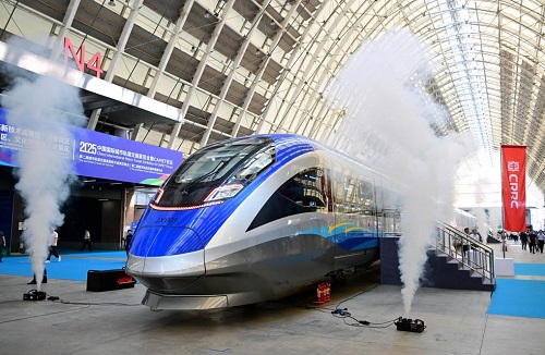 2025年9月18日,由中國(guó)中車(chē)自主研制且擁有完全自主知識(shí)產(chǎn)權(quán)的首列中國(guó)標(biāo)準(zhǔn)智能市域列車(chē)暨京雄快線(xiàn)列車(chē)在青島亮相。新華社記者 李紫恒 攝