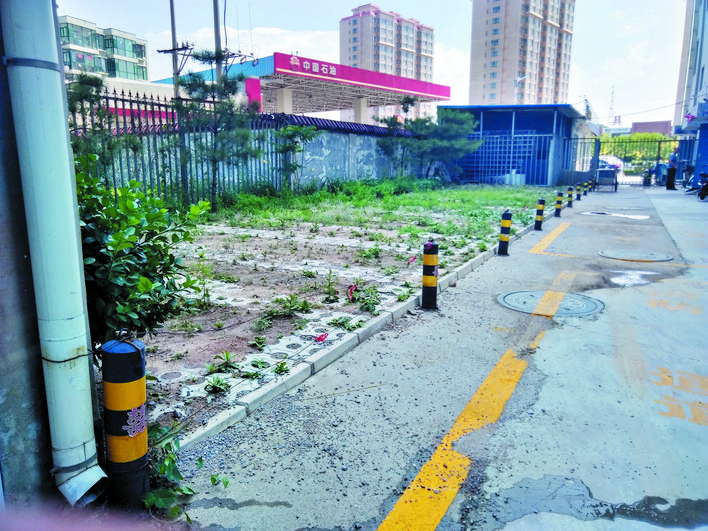 本報(bào)“百姓直通車”欄目記者于6月30日上午前往該小區(qū)進(jìn)行了采訪。該小區(qū)東門設(shè)置于云中北路與雁門東大道路口的西北角,大門的行人出入口開了一家家具店,店門開在行人過道上,店門的右側(cè)設(shè)置了一截不銹鋼護(hù)欄,好像是在提請(qǐng)行人“不能直行應(yīng)拐入行車道進(jìn)入小區(qū)”。進(jìn)入小區(qū)后,記者向小區(qū)居民了解到,該小區(qū)共有4棟樓,從南到北依序排列,位于南面的1號(hào)樓車庫東端有臨時(shí)搭建的彩鋼房,房門是用鋼筋焊接的簡易柵欄,面積大概有15平方米,里面空空如也,不知是所做何用,問及居民時(shí)也是閃爍其辭說,好像是存車的吧?隨后記者來到了4號(hào)樓車庫的東端,大概有8個(gè)露天車位被人設(shè)置地樁并鎖死,里面長滿了雜草。當(dāng)有居民路過,記者問及何故,居民也是借故推脫走開。此處也有一臨時(shí)搭建的彩鋼房,里面堆滿了雜物。這些私搭亂建亂設(shè)地樁的現(xiàn)象,究竟是物業(yè)所為?還是個(gè)別住戶私搭亂建?帶著這些問題記者找到了小區(qū)保安室(門房),保安室內(nèi)有4人圍坐在一起正在專心致志打撲克,記者問及相關(guān)問題,他們以管事的不在為由推脫了事。