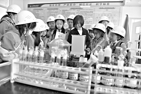 走進化驗室,小記者們很快被眼前的儀器設(shè)備吸引。“這里是糧食的‘體檢中心’,每一批糧食運進糧庫前,都要先在這體檢,合格了才能入庫?!惫ぷ魅藛T的話讓孩子們瞬間安靜,紛紛湊到儀器前仔細觀察。