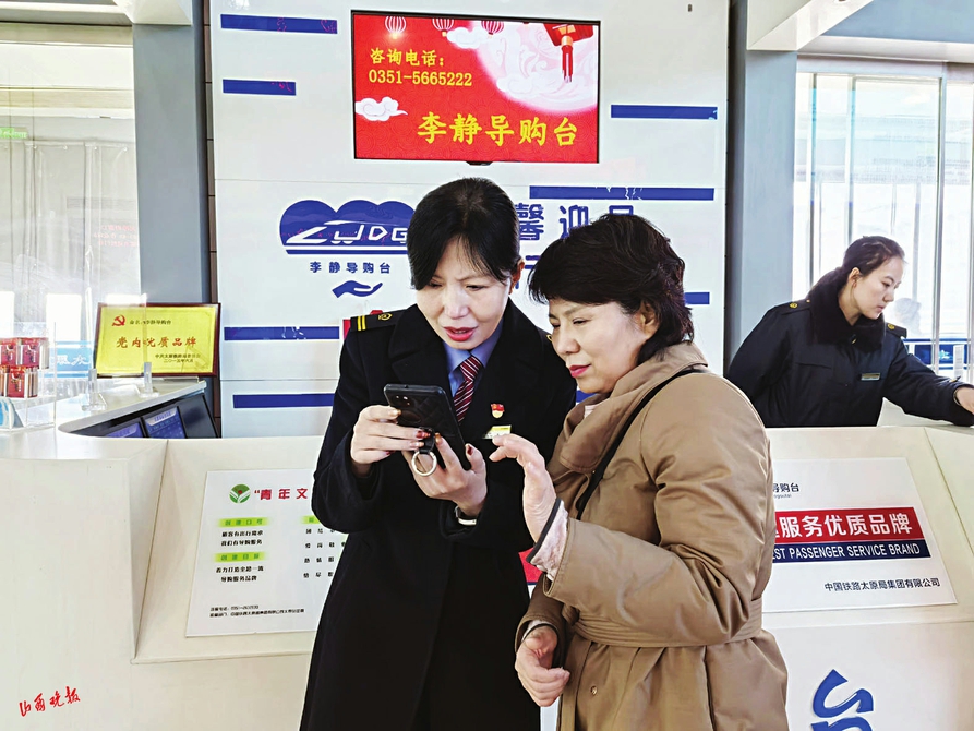 2月7日9時15分,太原南站候車大廳電子屏滾動顯示著最新的車次信息,節(jié)前返鄉(xiāng)客流迎來一波小高峰,廣播里循環(huán)播報(bào)著靜音車廂、重點(diǎn)旅客服務(wù)、余票查詢等溫馨提示。“李靜導(dǎo)購臺”前依舊圍滿了問詢的旅客,此起彼伏的咨詢聲里,李靜與兩名值班員分工協(xié)作,一人負(fù)責(zé)退改業(yè)務(wù)引導(dǎo),一人負(fù)責(zé)重點(diǎn)旅客信息登記,李靜站在最外側(cè),直面旅客最急切、最棘手的各類需求。