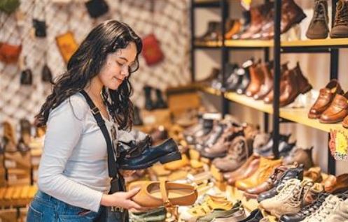 今年一季度,經(jīng)重慶江北國(guó)際機(jī)場(chǎng)口岸入境外籍旅客超13.7萬人次,同比增長(zhǎng)106%。圖為在重慶市渝中區(qū)某小商品批發(fā)中心,外國(guó)游客在選購女鞋。新華社記者 黃 偉攝
